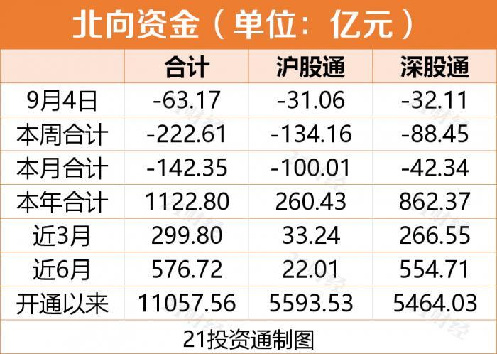·北向资金全天净流出超63亿 今日,A股三大指数大幅低开后震荡回升,最终集体收跌,沪指跌0.86%,深成指跌0.84%,创业板指跌0.54%。板块上,白酒、食品饮料及医疗等板块趋势股遭资金抛弃,热点主要集中在碳化硅、氮化镓、金刚石等第三代半导体和创业板低价股。北向资金全天净流出超63亿,连续五个交易日合计净流出222.61亿元,为3月19日以来首次。机构认为,这会进一步压制A股市场的风险偏好,个股机会也相应会减少。详情>>>(南财号·投资情报)