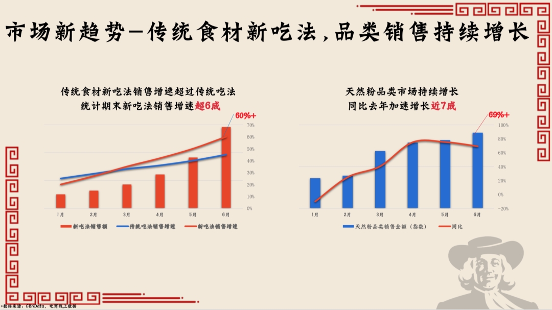 百事引述的来自CBNData和线上电商的数据显示,在中国市场上,“传统食材新吃法”的产品销售在逐年提升,今年以来也有超过60%的增长。同时,天然粉类品类市场也在持续增长,同比去年加速增长近7成。