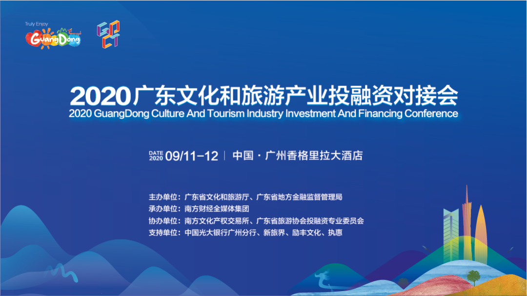 由广东省文化和旅游厅、广东省地方金融监督管理局主办,南方财经全媒体集团承办,南方文化产权交易所、广东省旅游协会投融资专业委员会协办的2020广东文化和旅游产业投融资对接会(以下简称“广东对接会”)将于9月11-12日在广州香格里拉大酒店举办。