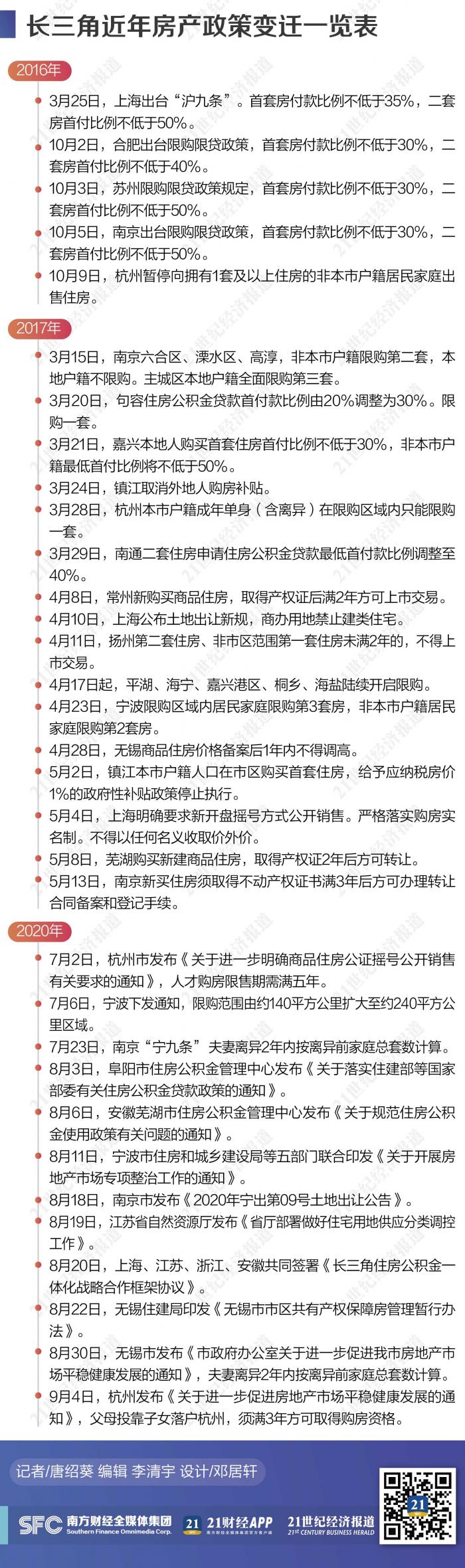 2020年以来,长三角政策明显倾向于防控市场上涨预期,最近的变化是,7月23日凌晨,南京七部门联合印发《关于促进我市房地产市场平稳健康发展的通知》,从加强土地市场调控、加强热点楼盘销售管理等方面出台九项楼市新政,同时升级限购政策,明确夫妻离异、任何一方自离异之日起2年内购买商品住房的,其拥有住房套数按离异前家庭总套数计算。