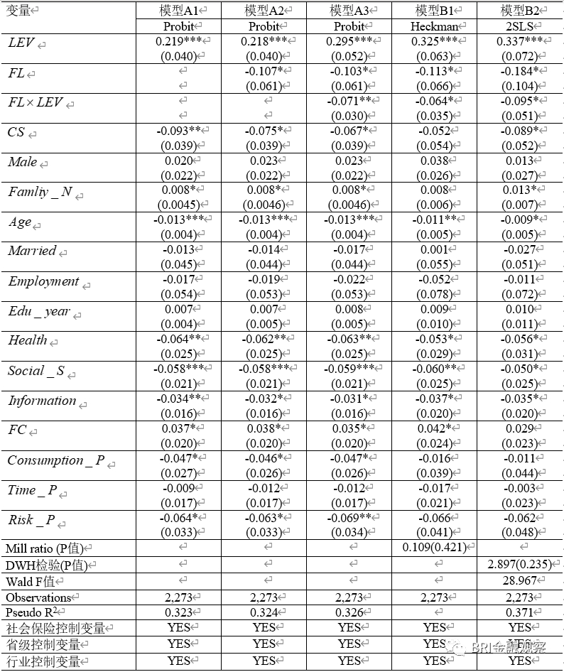 注:本文也控制了家庭财务管理者的工作类型、主观态度、对宗教、法律与政治的看法、成员社保参与情况、收入分位组、互联网使用、工作行业和省级虚拟变量等变量。