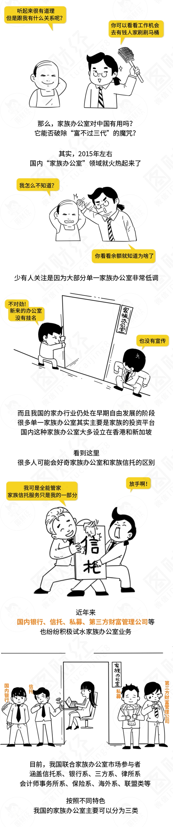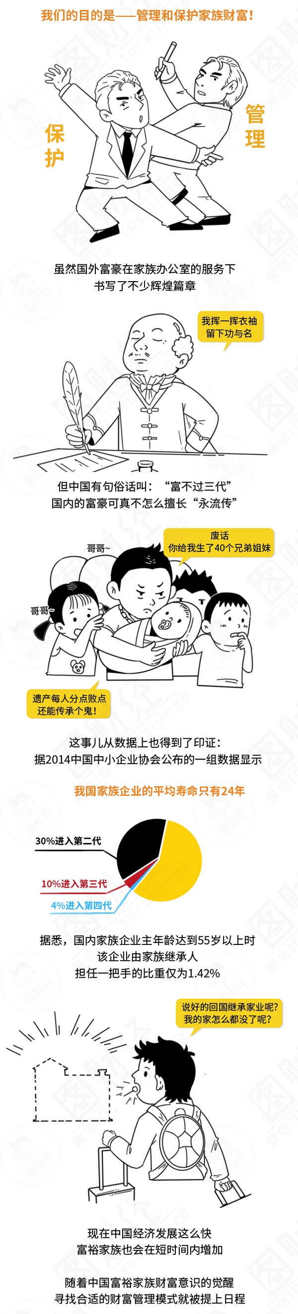 随着越来越多的中国企业家拥有更多的财富,家族财富以及价值观的传承是目前他们最关注的议题之一。如何打破国内“富不过三代”这个怪圈呢?或许可以借鉴许多声名卓著、传承百年的国外家族,他们百年来普遍使用“家庭办公室”架构,接受“家庭办公室”的服务。
