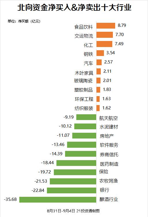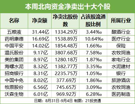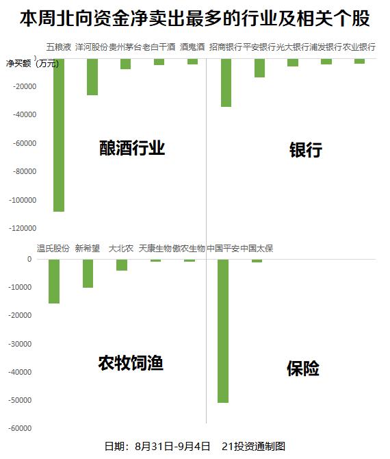 此外,前期北向资金热衷的酿酒行业被减持最多,达35.68亿元,仅龙头股五粮液就被减持超30亿元。