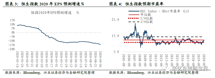 截至9月4日,恒生指数2020年EPS预测增速为-14.3%。