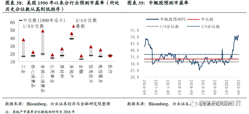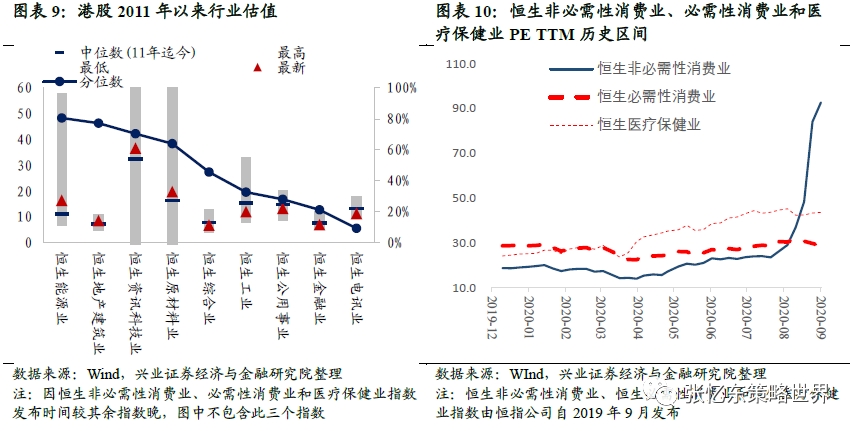 恒生医疗保健业(43.6倍)、恒生必需性消费业(28.6倍)、恒生非必需性消费业(92.7倍)。
