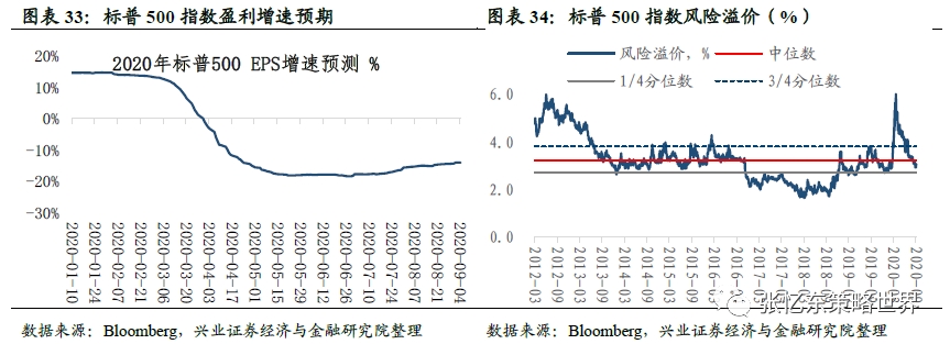 风险溢价水平和盈利预期。截至9月4日,标普500指数2020年预期EPS增速为-14.1%;本周五,股权风险溢价为3.0%,高于上周的2.9%,处于2010年11月以来的1/4分位数和中位数之间。(注:股权风险溢价=标普500市盈率倒数-十年期国债收益)。