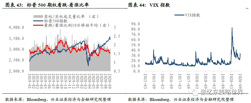投资者情绪。1)美股个股期权看跌看涨成交量比例10日移动平均为1.6,位于2014年7月以来的17%分位数水平;2)VIX指数:截至本周五,VIX指数从上周的23.0升至30.8,处于2014年7月以来的95%分位数水平。