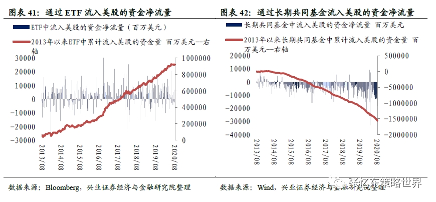 截至8月26日,通过ETF流入美股的周度现金净流量为-0.09亿美元,通过长期共同基金流入美股的周度现金净流量为-182.8亿美元。