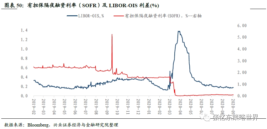 货币市场利率。截至9月3日,有担保隔夜融资利率(SOFR)为0.10%,高于上周五的0.07%;LIBOR-OIS利差为0.17%。
