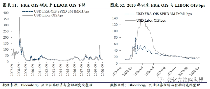 截至9月4日,相较于上周五,FRA-OIS上升0.1bp至16.4bps,LIBOR-OIS上升0.4bp至17.3bps。
