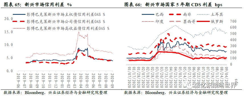新兴市场国家CDS利差。相较于上周五,本周以来,巴西5年期CDS利差下降9.4bps至206.6bps,印度5年期CDS利差下降5.1bp至76.4bps,土耳其下降10.3bps至516.2bps,墨西哥5年期CDS利差下降4.7bps至115.3bps,南非CDS利差下降4.5bps至285.0bps,俄罗斯CDS利差上升1.3bps至102.0bps。