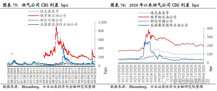 油气公司CDS利差:相较于上周五,埃克森美孚利差上升0.3bp至35.3bps;俄罗斯石油公司CDS下降14.9bp至194.6bps; 斯伦贝谢公司CDS上升3.1bp至100.5bps; 美国康菲CDS上升1.1bp至35.9bps。