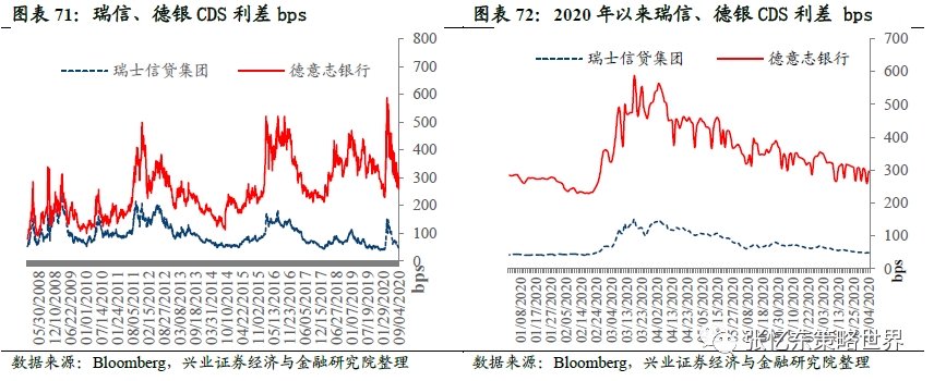 瑞信、德意志银行CDS利差:相较于上周五,本周瑞信CDS利差下降0.6bp至48.6bps;德意志银行CDS利差下降9.1bp至297.0bps。