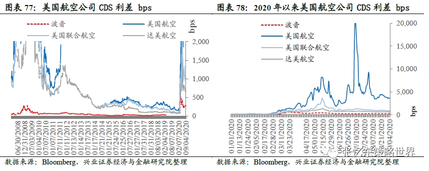 美国航空公司CDS利差:相较于上周五,本周波音公司下降2.5bp至277.8bps; 美国航空下降266.0bp至3582.6bps;达美航空下降21.2bp至670.1bps;美国联合航空下降21.5bp至908.4bps。