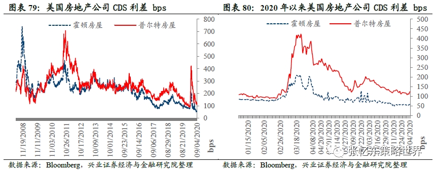 美国房地产公司CDS利差:相较于上周五,本周霍顿房屋公司CDS利差上升2.3bp至58.4bps,普尔特房屋公司CDS利差上升6.7bp至124.0bps。