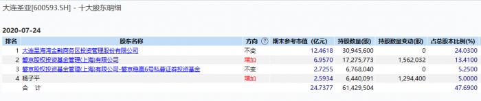 就当前股权结构来看,大连圣亚的第一大股东为星海湾投资管理,其在公司持股24.03%;股东磐京基金及其一致行动人的持股比例合计达17.8%;杨子平持股4%,提名杨子平的股东卢立女持股1.45%,磐京基金及杨子平、卢立女合计持股23.25%,股东杨子平因其提名及自身担任董事的人数合计已过半数,其已实际控制了公司董事会。