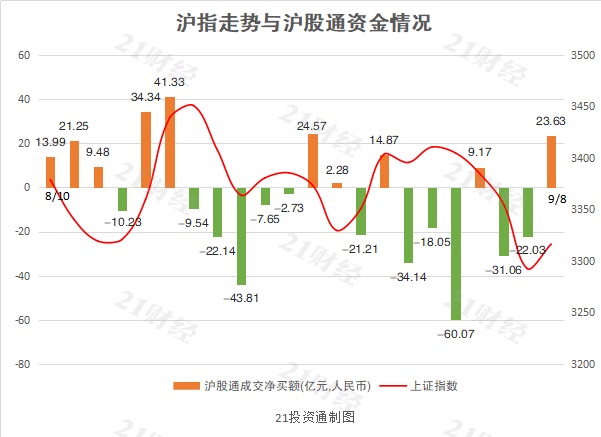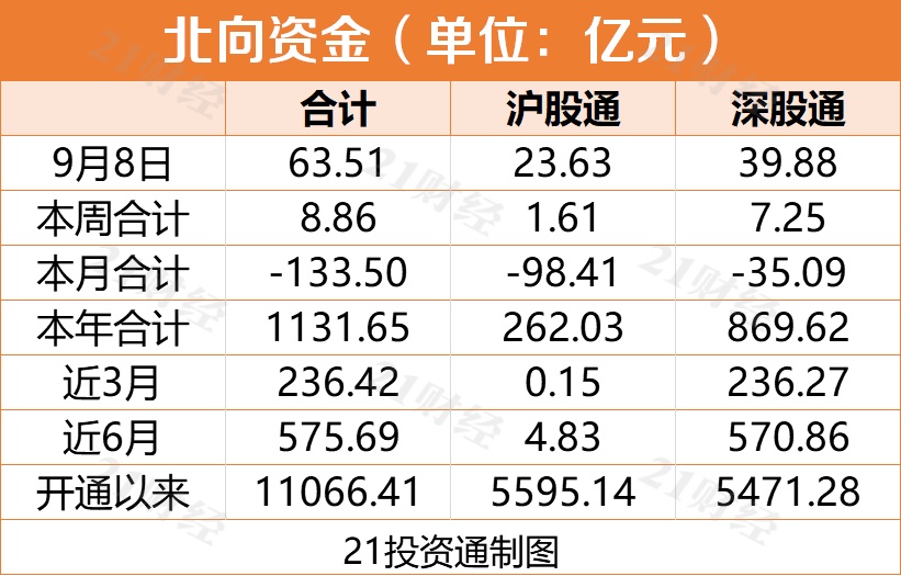 北向资金合计净流入63.51亿元,终结了此前连续六日净流出的态势。其中沪股通净流入23.63亿元,深股通净流入39.88亿元。