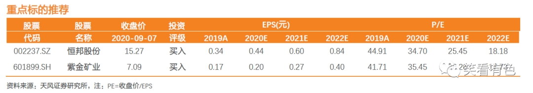 1、 联储政策调整,金价仍在上行趋势。近期贵金属价格由于美国十年期国债利率的阶段性筑底以及通胀预期的阶段性筑顶进入盘整期,美联储对于货币政策执行做出重磅调整,通胀达到2%改为长期平均目标,带来市场对于低利率环境延续的预期,同时对于通胀较高的接受度带动金价回升,贵金属价格仍在上涨通道。重点推荐江铜控股&民营激励,有望实现大幅增长的黄金上市平台恒邦股份(详见深度报告《拟争取收购大型金矿,A股第四大黄金公司横空出世》);弹性角度关注山东黄金、华钰矿业、湖南黄金等,估值和资产配置角度关注紫金矿业、银泰黄金、中金黄金等。