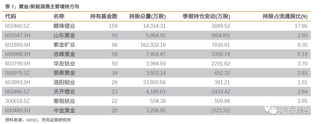 涨跌幅来看,黄金板块一直独秀。2020H1来沪深300震荡小幅上涨1%,有色板块回调4%,黄金大幅上涨6.4%,年初至今涨幅超过40%。中报前十大重点持仓个股占有色持仓比例超过90%,重点增持在黄金(紫金矿业/山东黄金等)和新能源钴(华友钴业)/锂(赣锋锂业)。