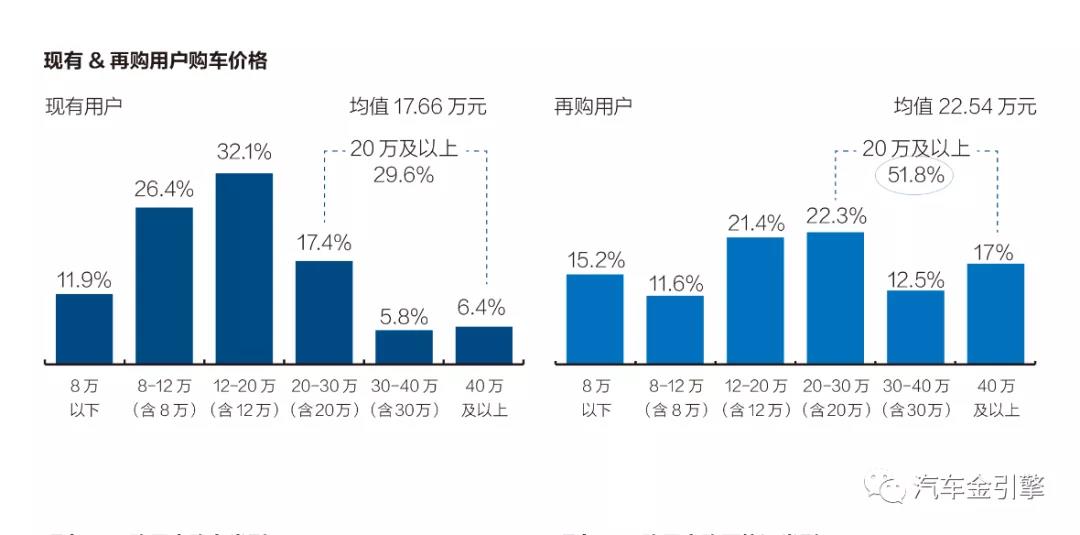 而且再购用户消费升级趋势明显,再购预算更高,20万及以上相对更多。