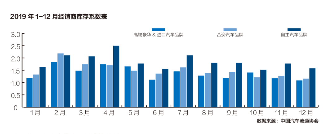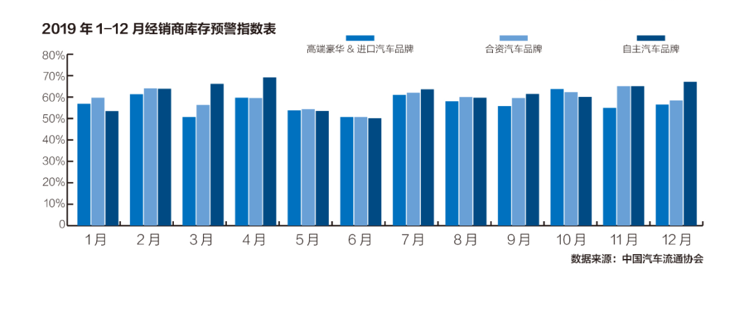 而根据中国汽车流通协会公布的2019年各月经销商库存系数和库存预警指数显示,自主品牌指数最高,豪华品牌指数最低。