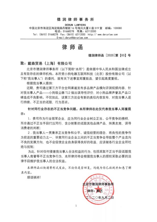 近日,戴森约评测的截图在网上流传,内容则是要褒戴森贬小狗,而这也终于引起了小狗的律师函回应。律师函内容显示,戴森多次通过不正当舆论打压小狗电器,作为行业头部品牌没有做到应有的担当。