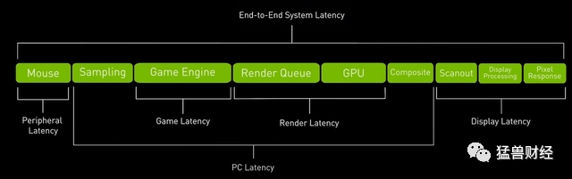 这就是英伟达宣称的最新GPU所提供的功能。但是仅通过GPU降低延迟是不可能的。一个常见的误解是,更好的GPU只会产生更流畅的游戏体验。这是不正确的,因为在鼠标移动到显示器之间的任何位置都可能产生延迟。如果英伟达仅仅专注于创造最高质量的GPU,他们可以这样做,把不佳的游戏体验归咎于鼠标和显示器(以及两者之间的每一个组件)。