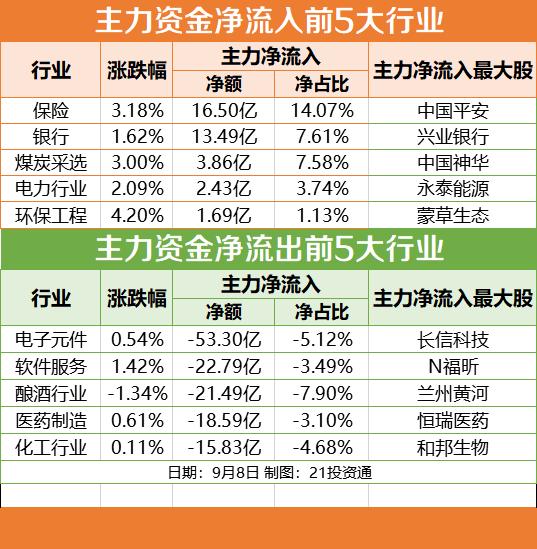 截至9月8日,北向资金合计净流入63.51亿元,终结了此前连续六日净流出的态势。其中沪股通净流入23.63亿元,深股通净流入39.88亿元。