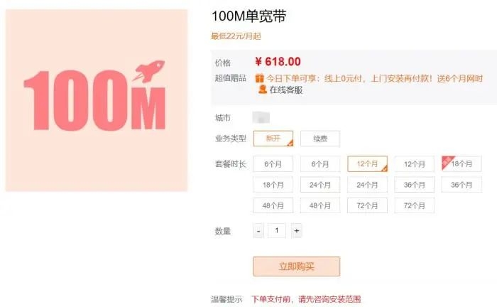 中国移动就推出了每月消费58元赠送百兆宽带的套餐,几乎和100M长城宽带价格一致,更何况套餐内还有15GB的手机流量和300分钟通话时长。靠着这一打法,中国移动迅速占领了大片新装宽带市场。