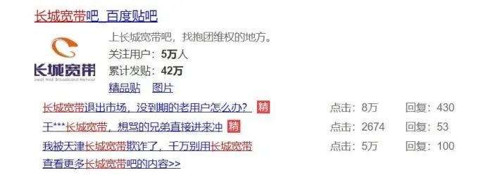 一般人恐怕很难想象,2020年了,上个网还会遇到这么多幺蛾子。从长城宽带贴吧的介绍就可以看出用户怨气有多大:“上长城宽带吧,找抱团维权的地方。”