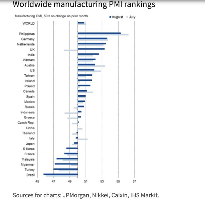 IHS Markit 数据显示,8月欧元区制造业PMI欧元区PMI终值录得51.7,维持增长与预期相符;美国8月制造业PMI录得56,超出预期54.2,为自2019年1月以来的最高水平;而英国8月制造业PMI录得55.2,创2018年1月以来新高。