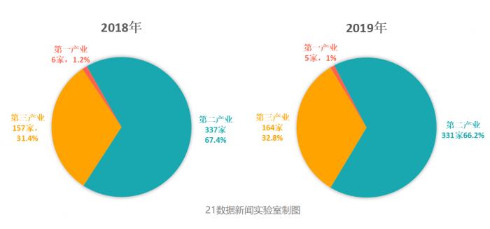 虽然民营企业500强的产业结构分布仍以第二产业为主,制造业依旧是主导产业,但三次产业中只有第三产业入围企业数量增加,较上年增加 7 家,而第一、第二产业分别减少了 1 家、 6 家。