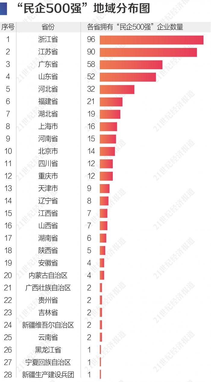 另外,拥有诸多外资企业总部的上海,有16家民企上榜;拥有诸多央企总部的北京,有14家民企上榜。