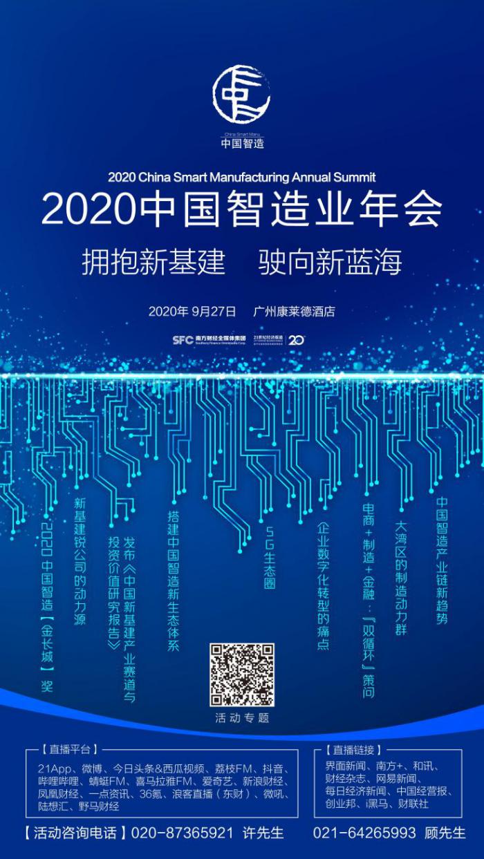 会上,《21世纪经济报道》联合赛迪顾问将发布《中国新基建产业赛道与投资价值研究报告》,并揭晓2020 中国智造【金长城】奖评选结果。