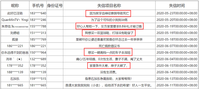 让人大跌眼镜的是,轻松筹和水滴筹公示的失信黑名单,审核标准基本上是审核标题。