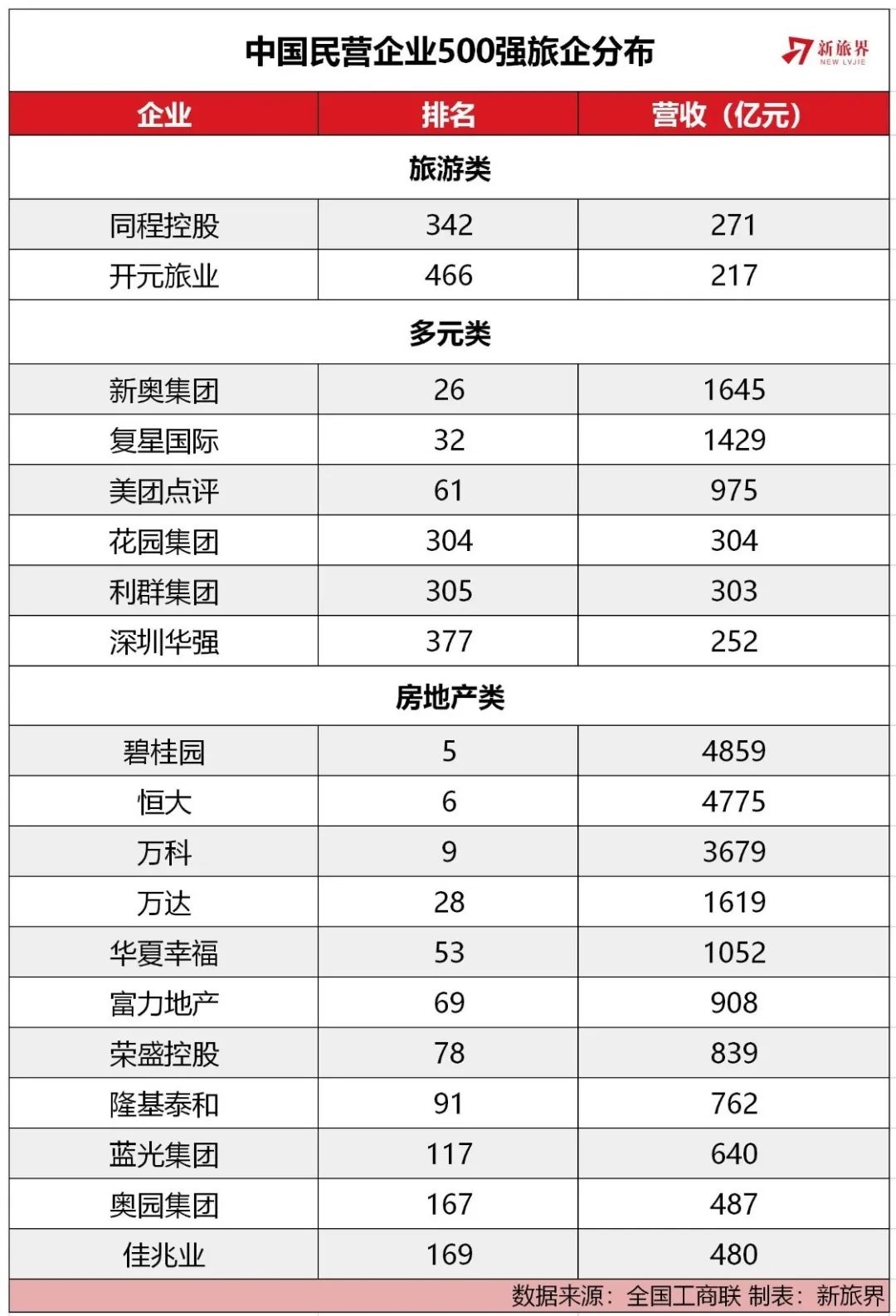 整体来看,旅游业由于产业集中度低的属性限制,产生的巨头企业并不多,这在国际上也同样如此,世界500强企业中纯粹以旅游为主业的企业屈指可数。但由于旅游业丰富的消费场景、广阔的跨界空间和巨大的潜在市场,使其成为巨头企业最看好的战略性产业,巨头企业各自携巨量资金和优势资源进场,发展旅游业、改造旅游业。一定程度上,此次发布的民营企业500强,也是这种趋势的体现。