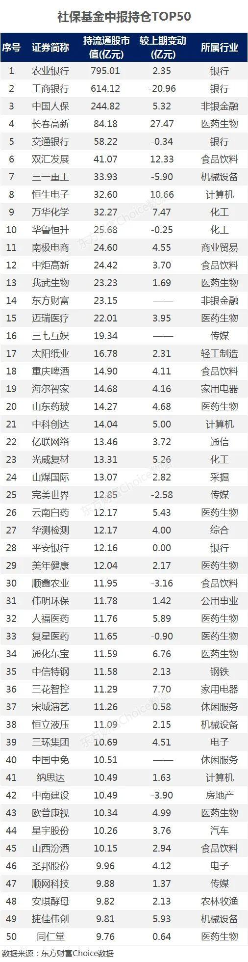 05、社保基金重仓TOP50