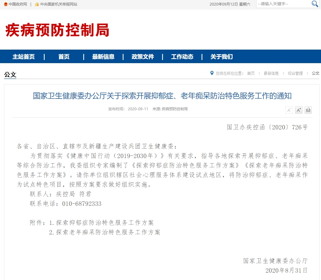 9月11日国家卫健委官网发布《探索抑郁症防治特色服务工作方案》,方案提出,各个高中及高等院校将抑郁症筛查纳入学生健康体检内容,建立学生心理健康档案,评估学生心理健康状况,对测评结果异常的学生给予重点关注。