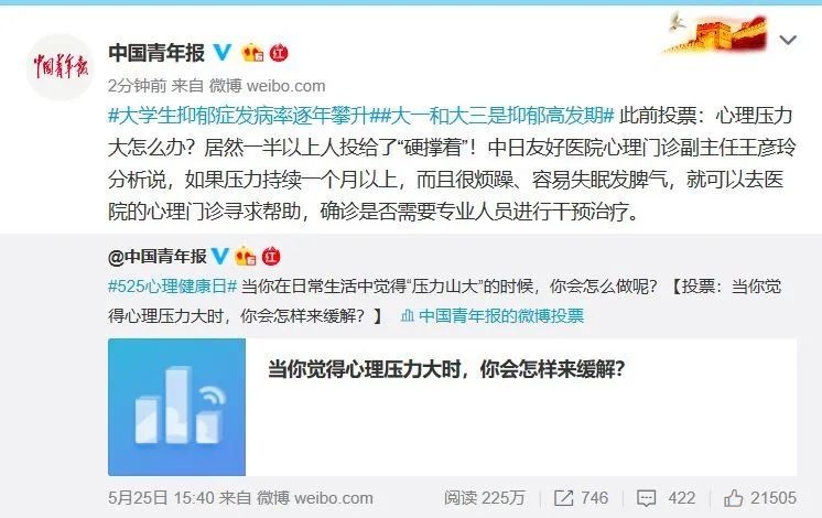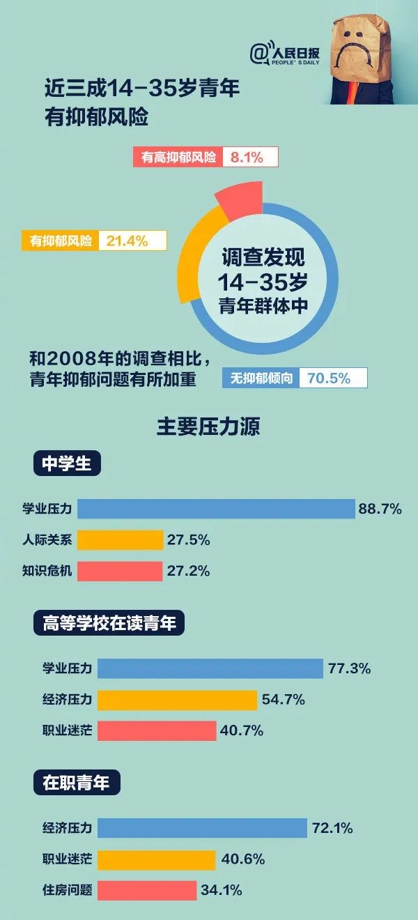 有数据显示,中国大学生抑郁症发病率逐年攀升,大一和大三是抑郁症高发期。