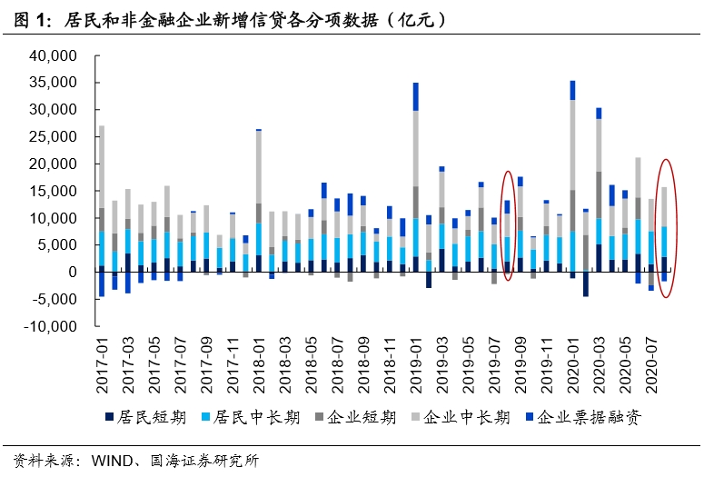 1、居民信贷平稳增长,企业信贷受票据融资拖累