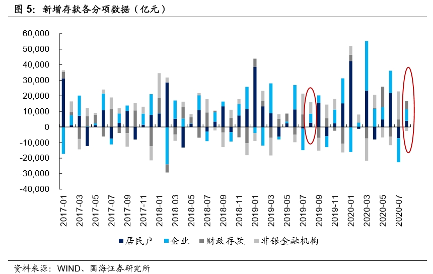 另外,财政存款增加5,339亿元,同比多增5,244亿元,或与地方政府专项债密集发行之后,部分资金尚未投入使用,暂时形成了财政存款有关。