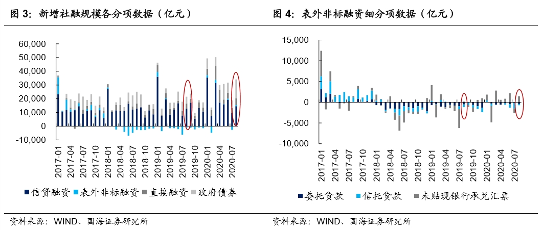 对于社融未来走势,考虑到9月份还有大量地方政府债券发行,这在一定程度上会对社融增速形成支撑。但与此同时,也需要警惕信贷政策趋于常态、以及地产融资政策收紧后,对信贷投放和非标融资的拖累。