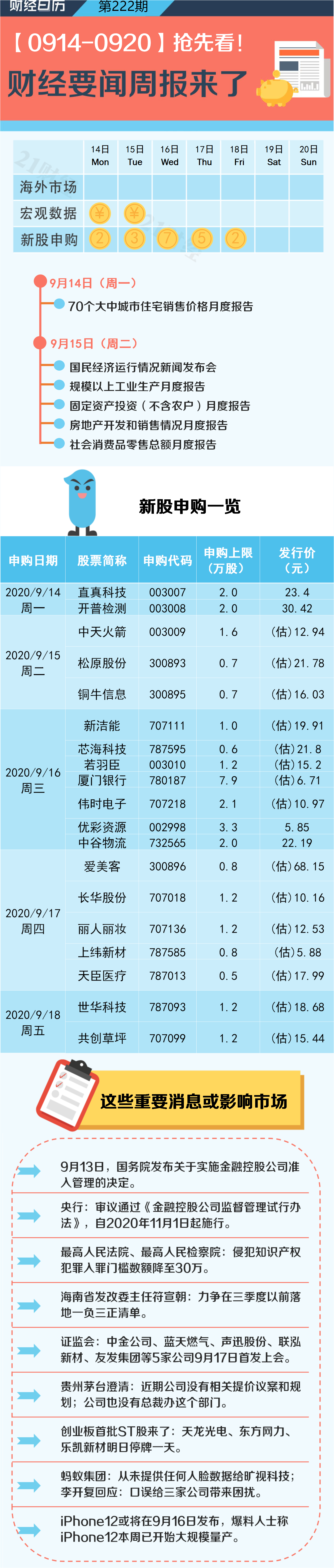 财经日历丨未来一周19只新股发行!A股将怎么走?十大券商策略把脉
