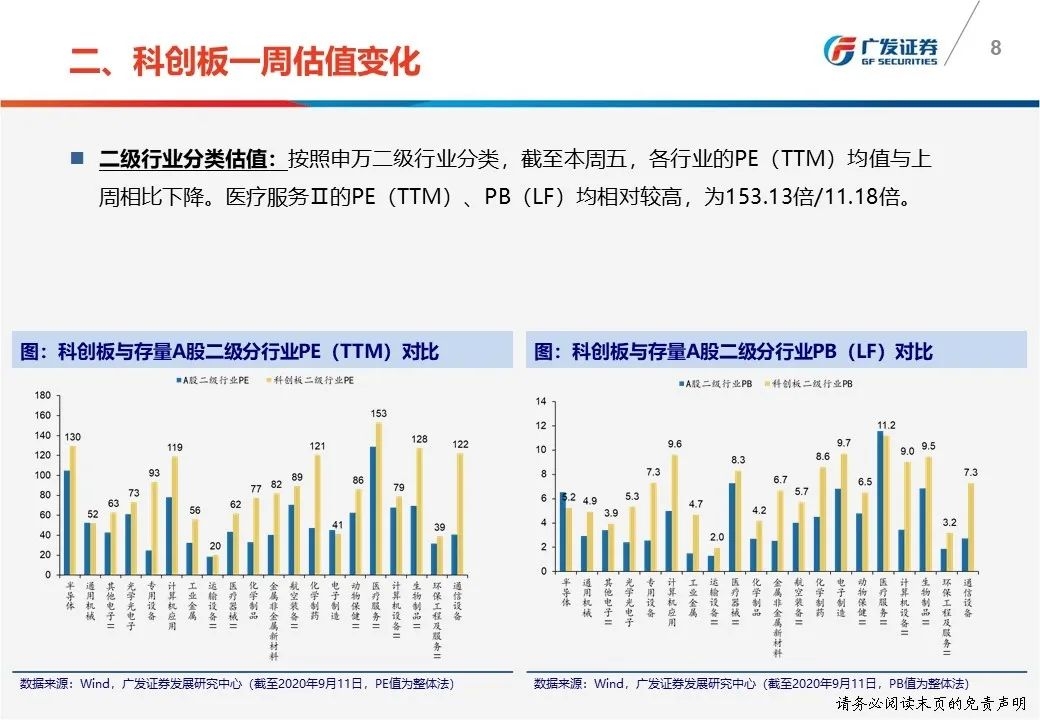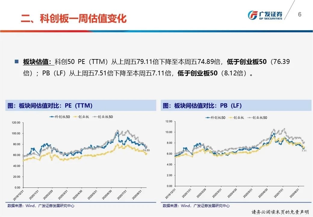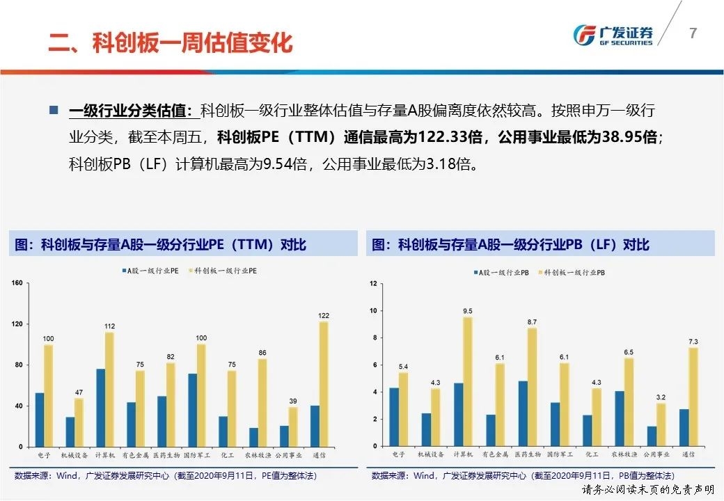 一周估值变化:①科创50PE(TTM)至本周五74.89倍;②科创板PE(TTM)通信最高为122.33倍,公用事业最低为38.95倍。