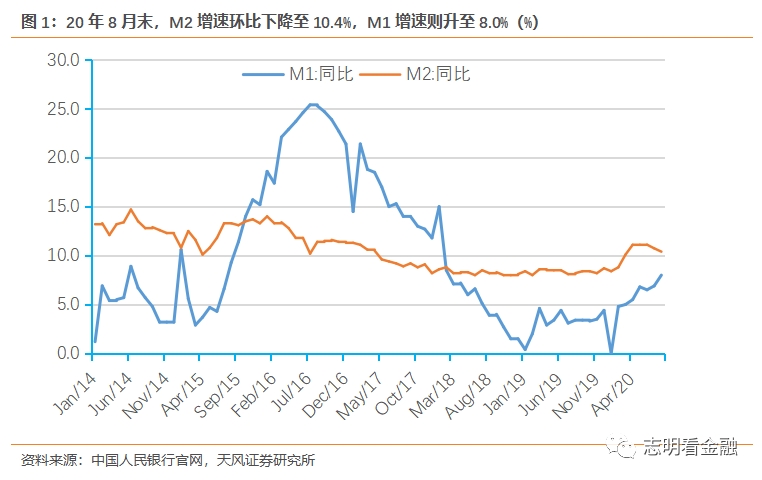 8月末M1增速上行至8.0%,延续上行态势,表征经济活性提升。8月末M2增速10.4%,环比下降0.3个百分点,社融同比大增之下,M2增速却下降。我们认为主要有:1)8月财政存款同比大增5244亿,导致M2增速波动;2)结构性存款压降;3)严监管导致同业投资等减少,影响存款派生。