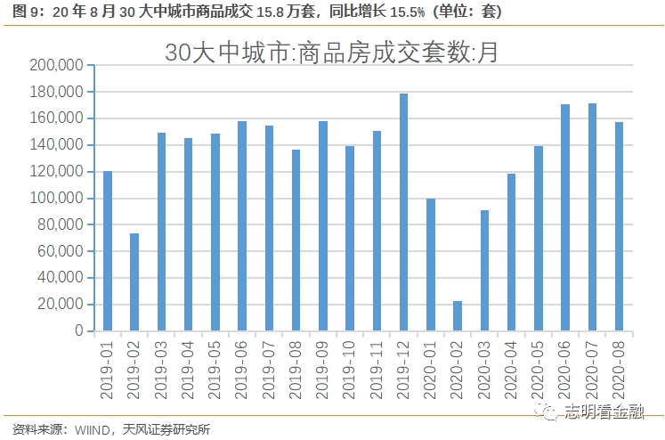 个贷增长强劲,个贷+8415亿。后疫情时代,国内消费逐步恢复,个贷投放加快,8月住户短贷大增2844亿。8月30大中城市房地产成交套数达15.8万套,同比增长15.5%,房贷需求较好,8月住户中长期贷款+5571亿。