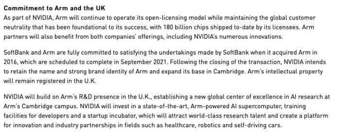 交易完成后,英伟达打算保留Arm的名称并扩大其在总部剑桥的规模。Arm的知识产权将继续在英国注册。