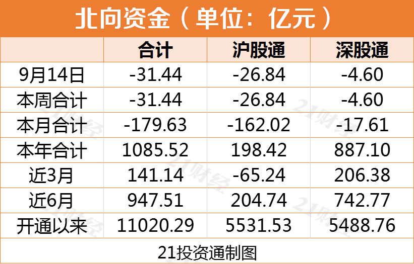 不过,北向资金终结连续两日净流入的态势,净卖出31.44亿元,净卖出幅度也超过了前两日净买入金额之和。