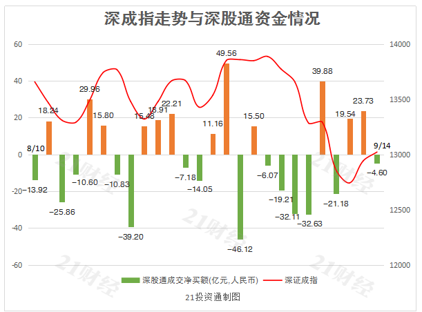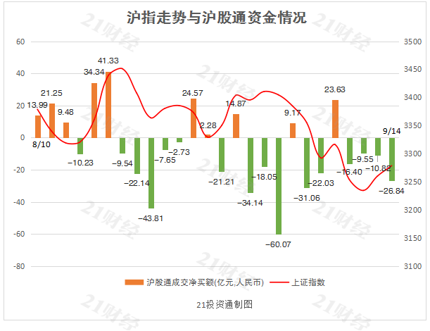 其中,沪股通净卖出26.84亿元,深股通净卖出4.6亿元。值得注意的是,沪股通已连续四日净流出,净卖出合计63.61亿元。