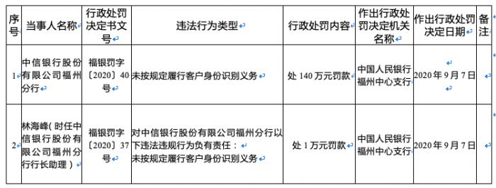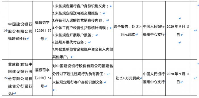 中信、建行、招行、海峡也领罚单:建行被罚314万